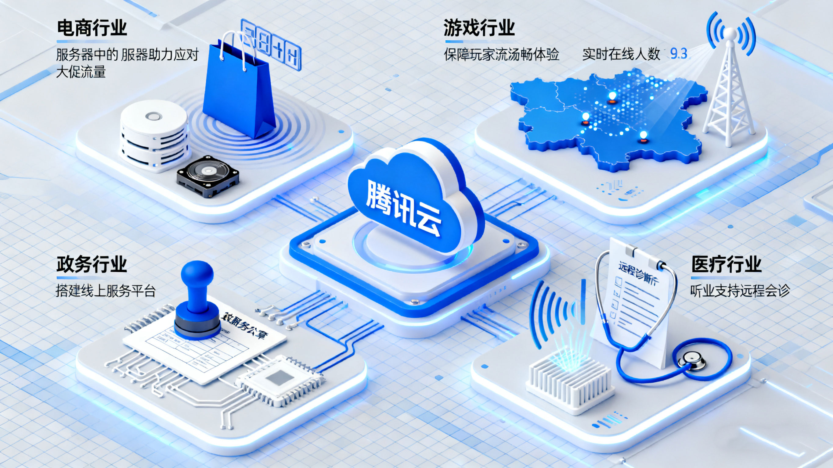 腾讯云为政务行业提供了定制化的云服务解决方案,包括服务器托管、数据存储、云计算等服务。政府部门可将政务系统部署在腾讯云服务器上,实现政务数据的集中管理和共享,避免了数据孤岛的问题。同时,腾讯云的安全防护体系符合政务行业的高安全标准,能有效保障政务数据的安全和隐私。