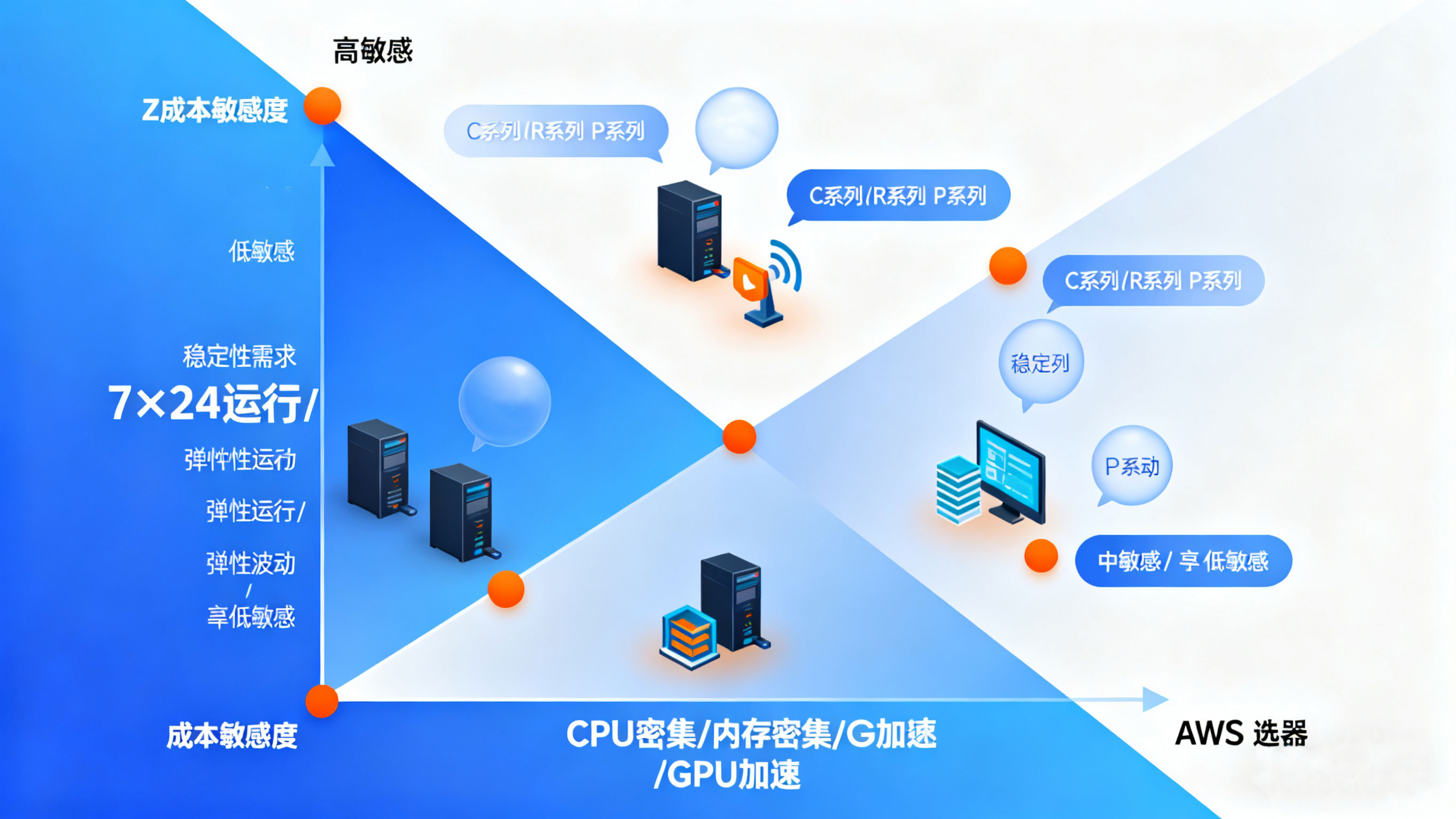 企业在选择 AWS 服务器前,需先明确三大核心需求:计算强度(CPU 密集型 / 内存密集型 / GPU 密集型)、业务稳定性(是否需 7×24 小时运行)、成本预算(短期试错 / 长期规模化)。在此基础上,需重点评估四个维度:性能指标(CPU 核心数、内存容量、GPU 算力)、扩展性(是否支持弹性扩缩容)、合规性(是否满足行业数据驻留要求)、配套服务(是否需绑定存储、网络资源)。例如,短视频平台的视频转码业务属于 CPU+GPU 密集型,且需应对流量波动,选型时需优先考虑 GPU 实例的算力与 Auto Scaling 能力;而企业内部 OA 系统属于轻量计算,稳定性需求高,可选择通用型实例配合预留计费模式。